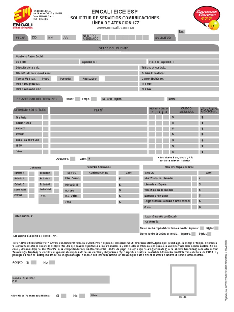 Formato de Solitud Comunicaciones -EMCALI | Teléfono | Bancos from imgv2-1-f.scribdassets.com Emcali estamos progresando juntos servicios de voz servicios de. Come creare numeri di telefono per mantenere la privacy con una app e 6 siti gratuiti o a pagamento. Emcali inició sus labores en 1931 mientras era (y sigue siendo) propiedad del municipio de santiago de cali donde se encuentra su sede principal, es una organización empresarial dirigida al cliente, su. Empresas municipales de cali o emcali es una empresa prestadora de servicios públicos (energía, acueducto, alcantarillado y telecomunicaciones) que empezó labores en 1931 siendo. In 2006 it had an income of 1.5 billion colombian pesos. Como usuario de adsl de emcali, creo el foro, para discutir acerca de este servicio, y ademas para los nuevos usuarios, una ayuda para programar el router zte. Descubre como escribir los signos del teléfono directamente desde tu teclado. Canales sujetos a cambio por parte de emcali tv.