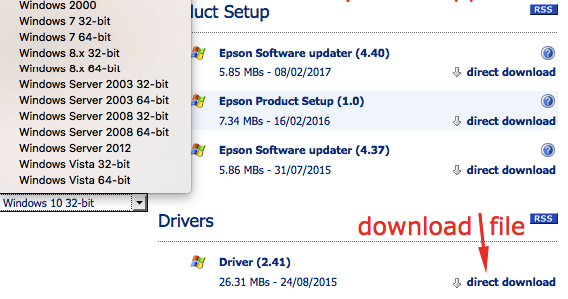 Configuration du pilote pour windows 10, 8, 7, vista, xp et mac os pour epson stylus cx4300.